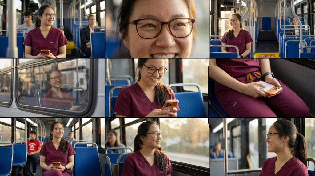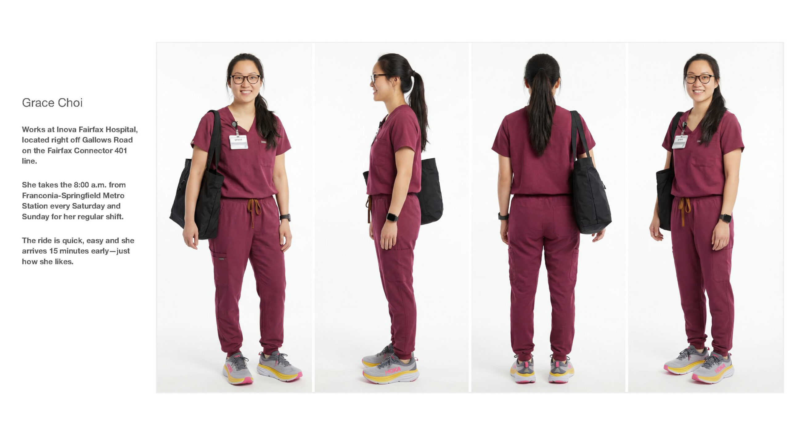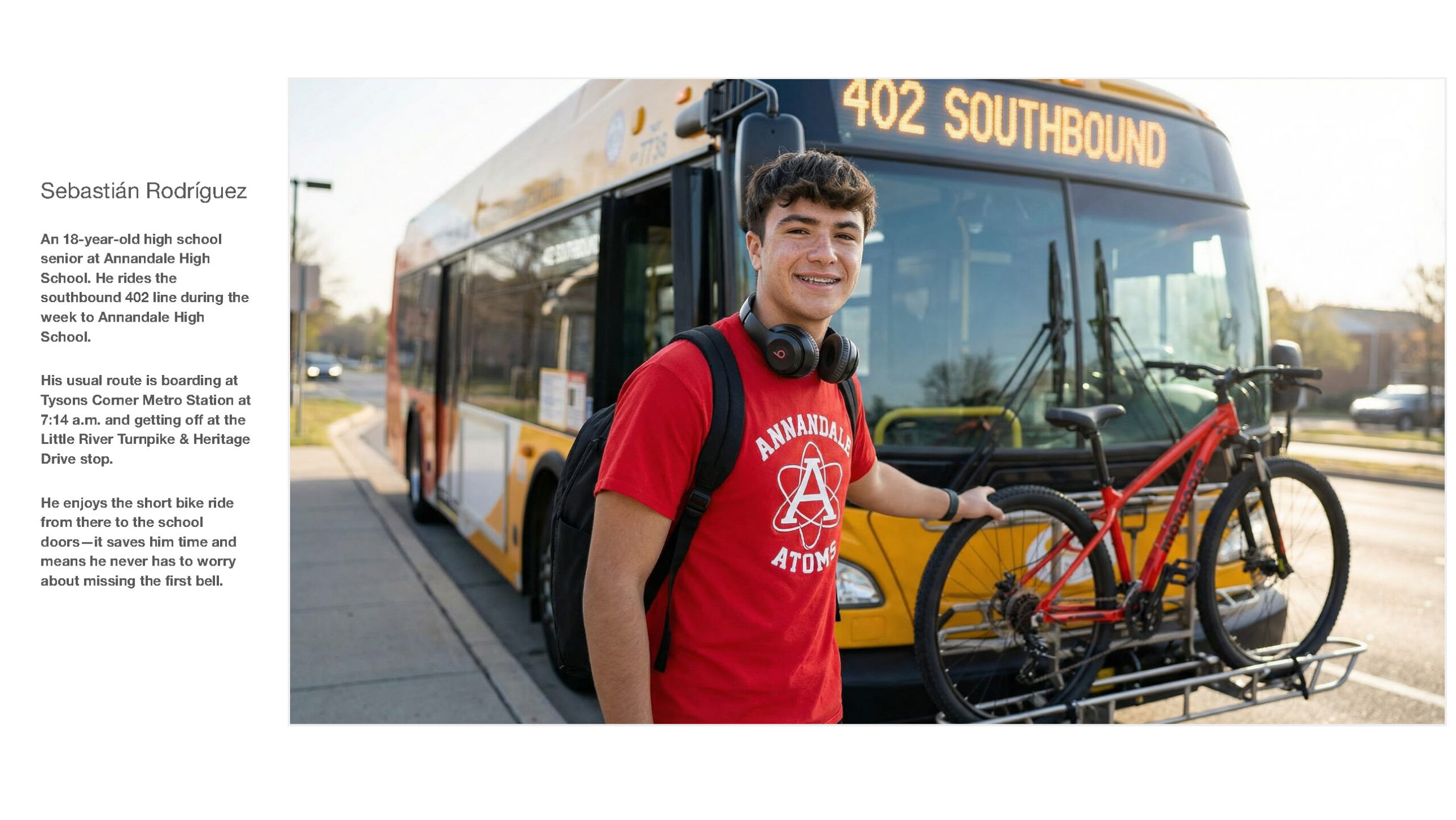 We storyboarded sample personas that reflect our multicultural, multigenerational communities and set them against backdrops along the 401/402 bus route corridor. Follow Grace, Sebastián, Emily, Jordan and Brooke on their route to get there.