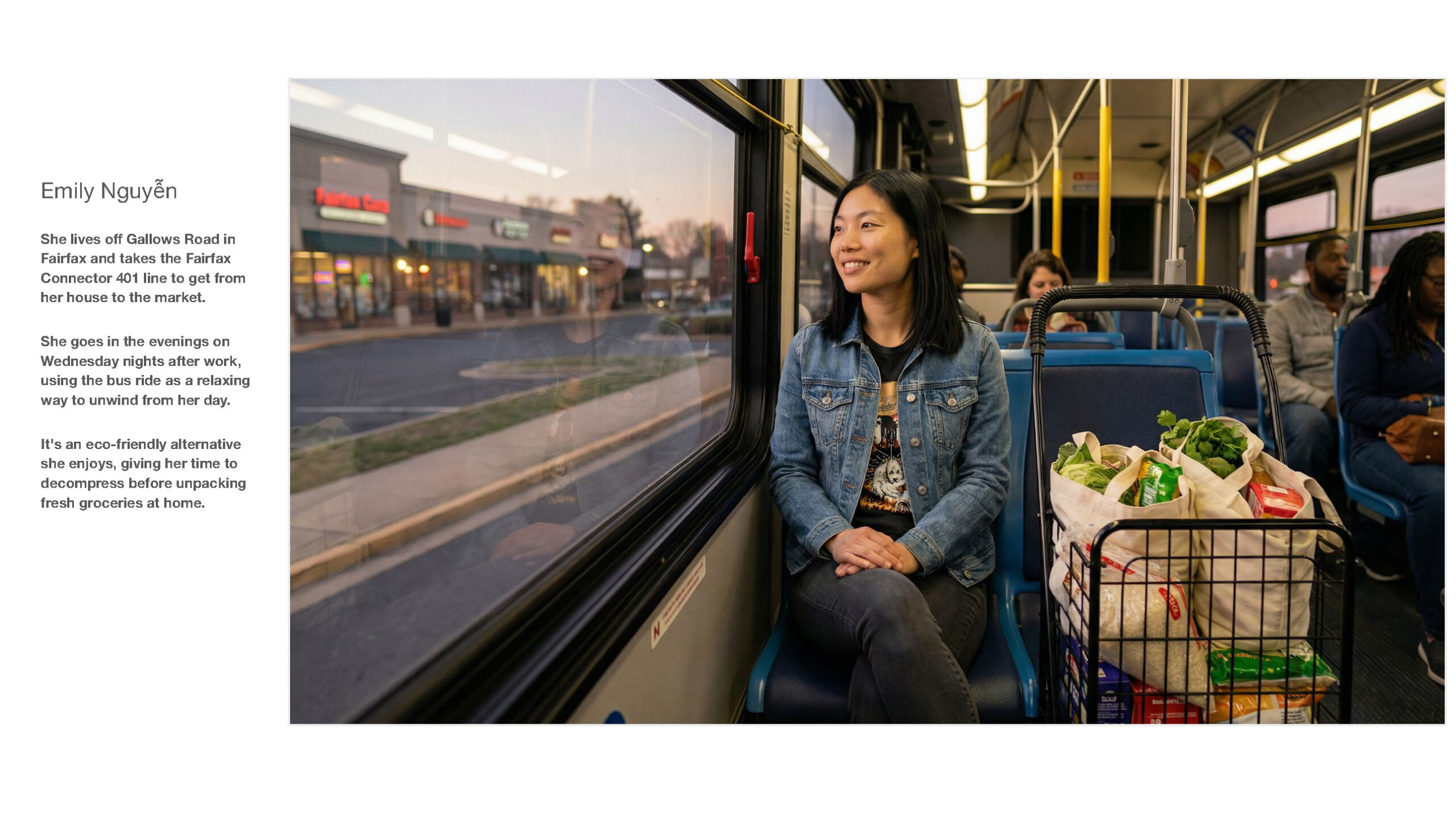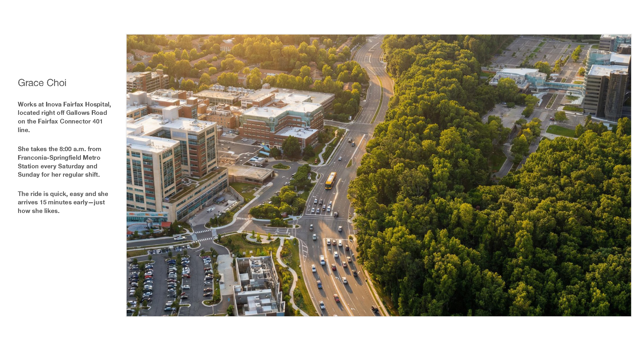 We began with the end in mind: residents’ destinations. And we focused on how the Franconia/Springfield service changes, among other Fairfax Connector benefits and amenities, helps riders reach them.