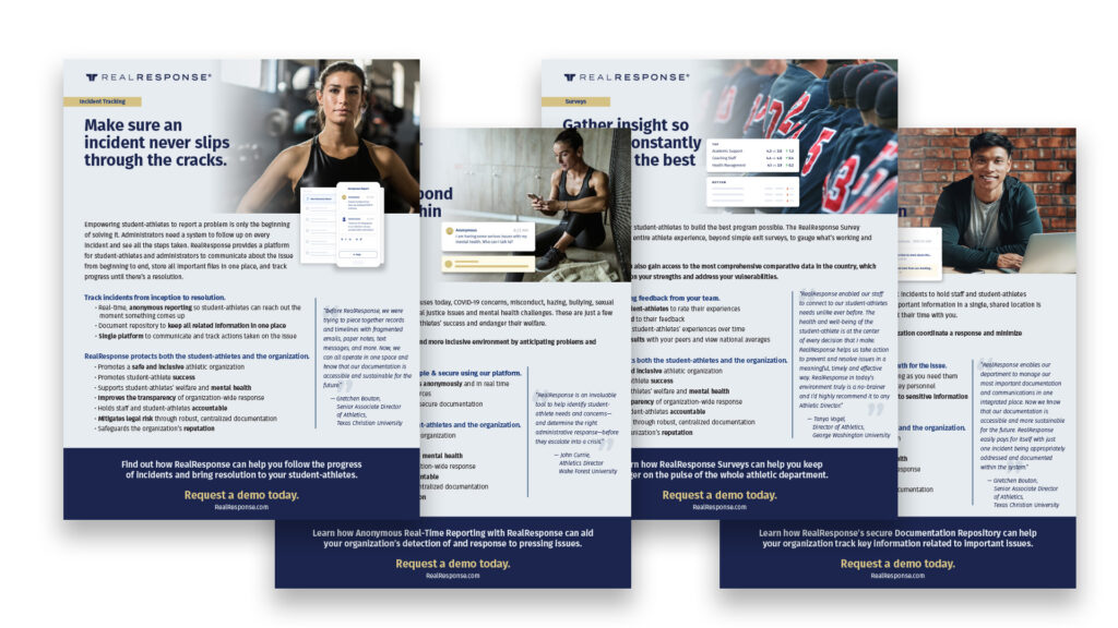 RealResponse is a startup with a mission to create safer, more accountable athletic environments through confidential communication. DepartmentC partnered with the company in its early years to build a strong marketing and communications foundation, shaping its brand story, refining messaging for key audiences, and developing tools and content that positioned RealResponse as a trusted voice in athlete welfare and integrity.